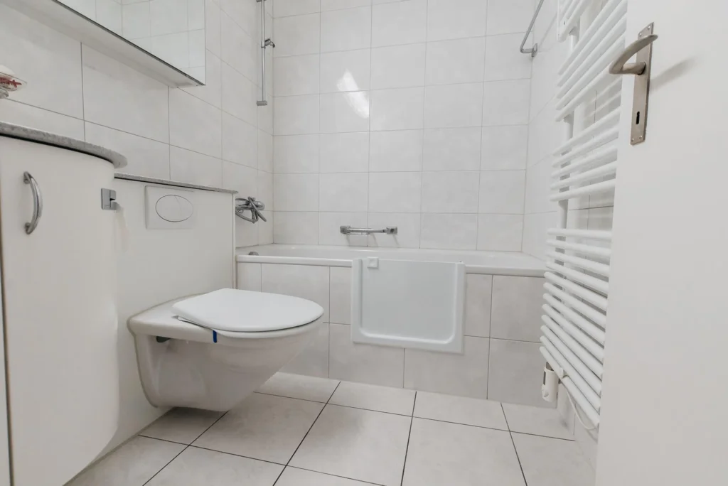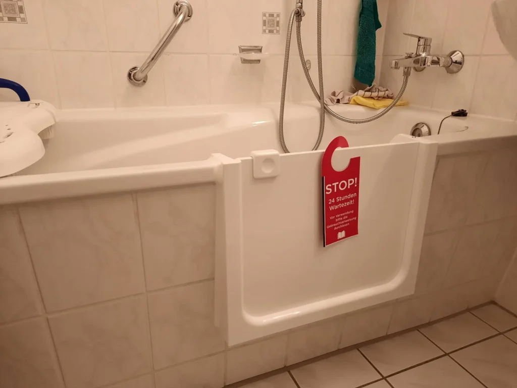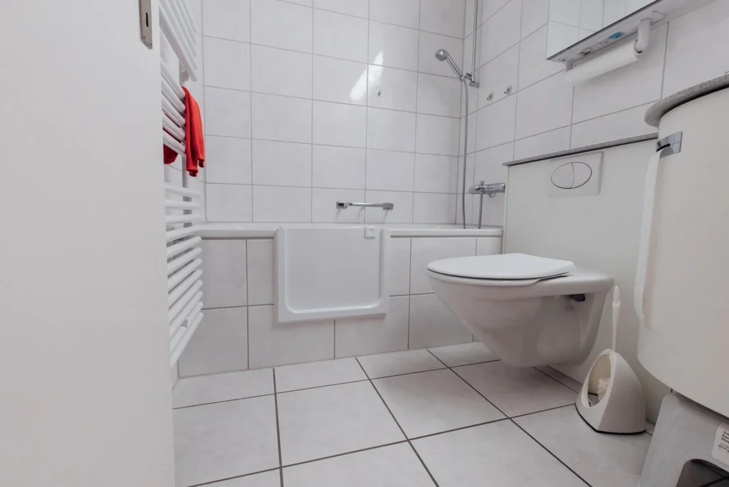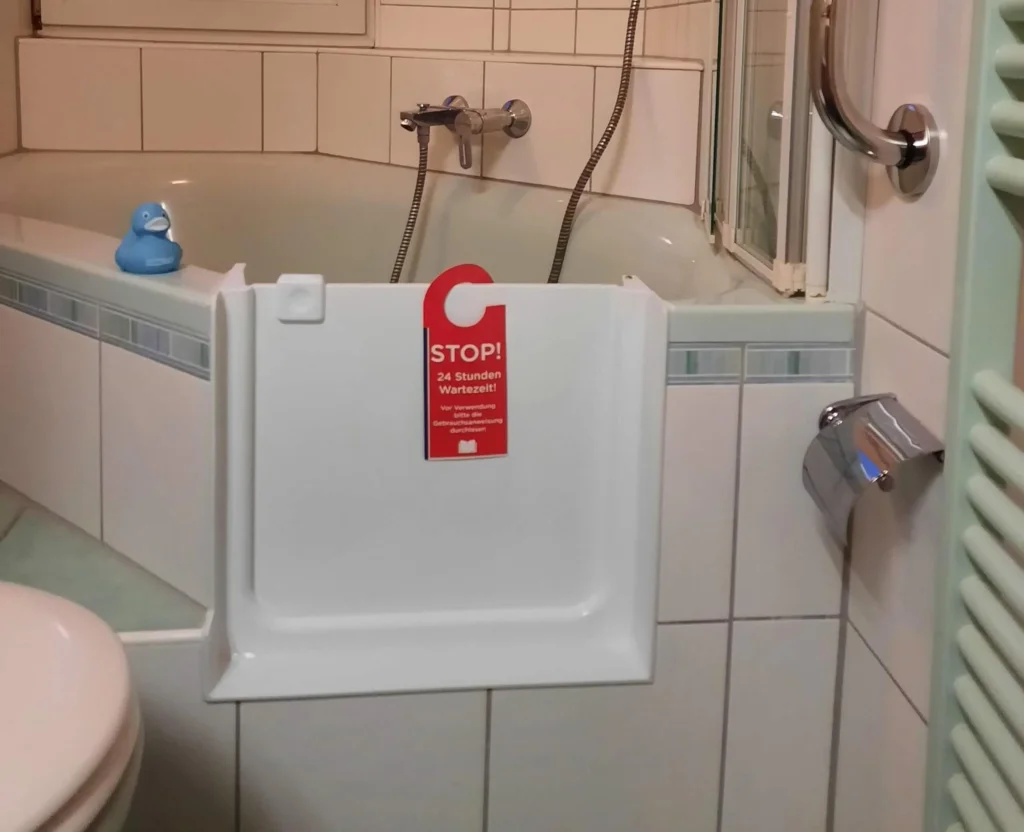 Sie ist eine barrierearme Lösung, falls das Betreten und Verlassen der Wanne schwierig wird, wie z. B. vor oder nach einer OP, ohne das Bad komplett umbauen zu müssen.