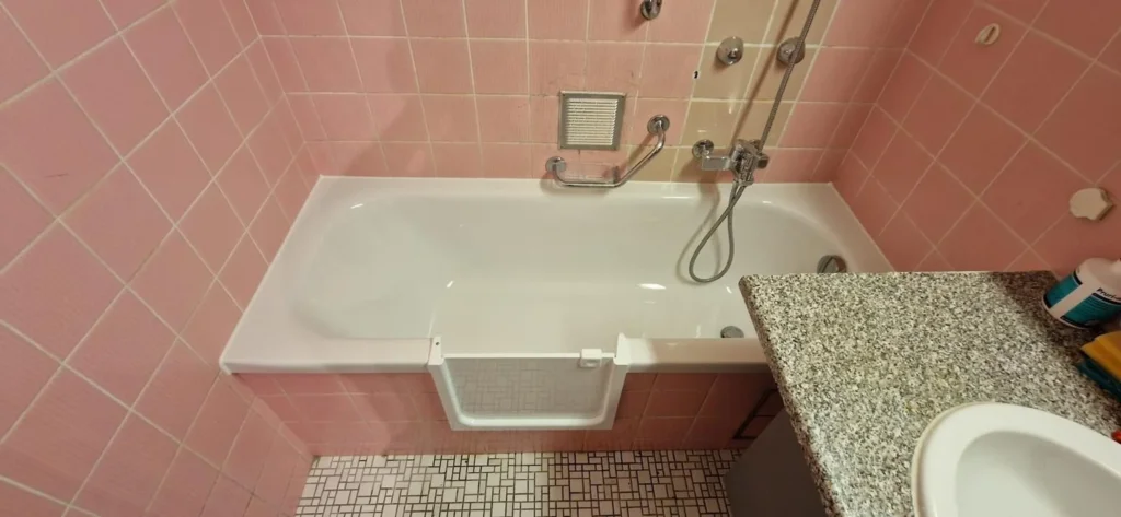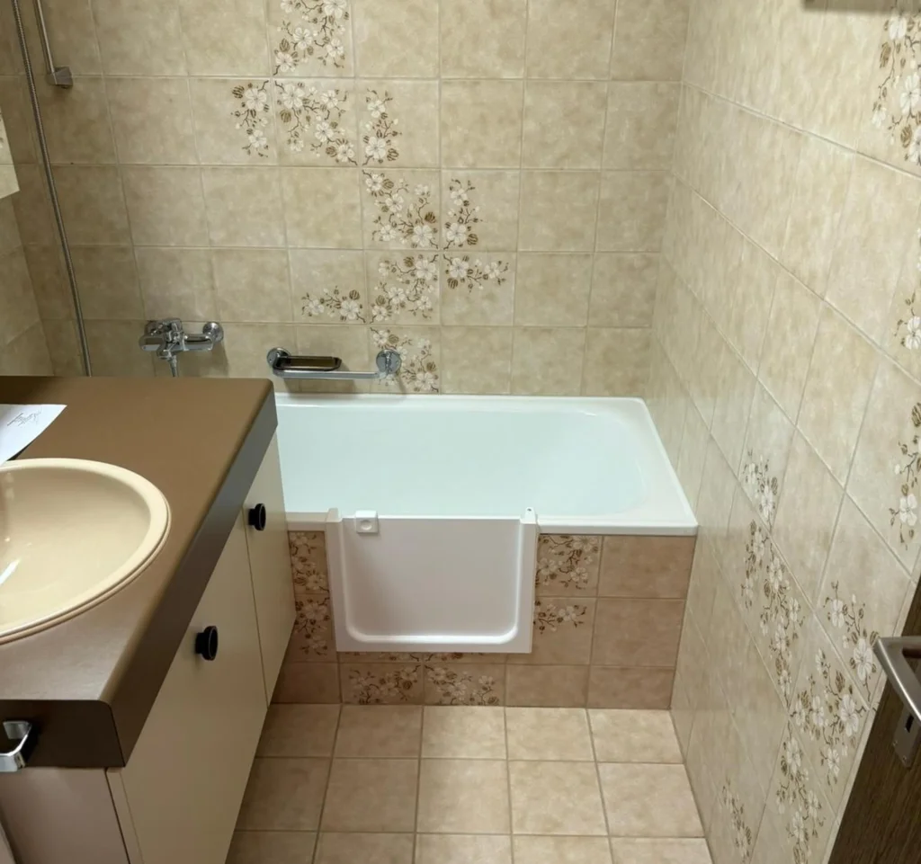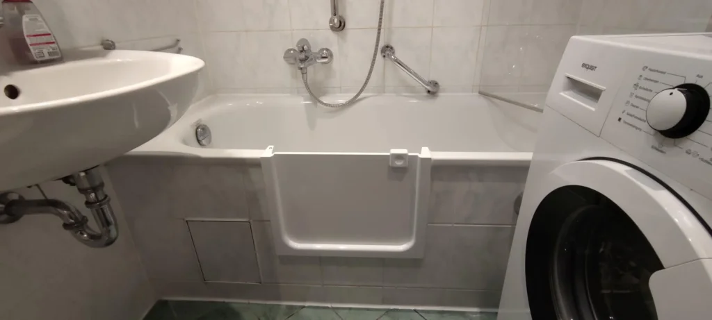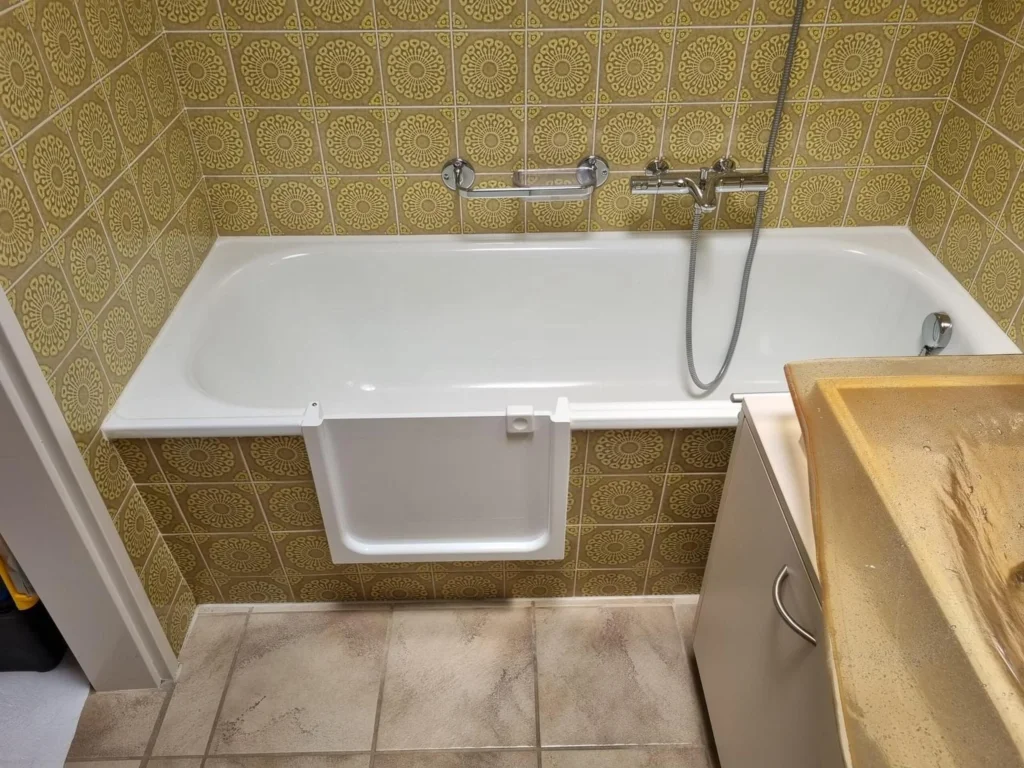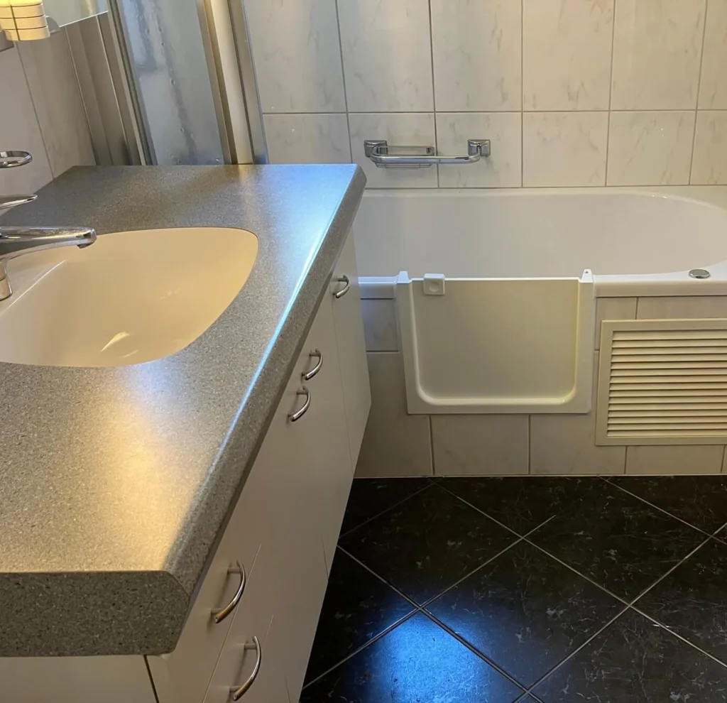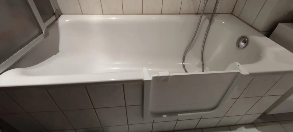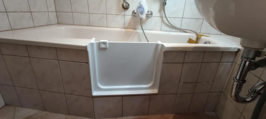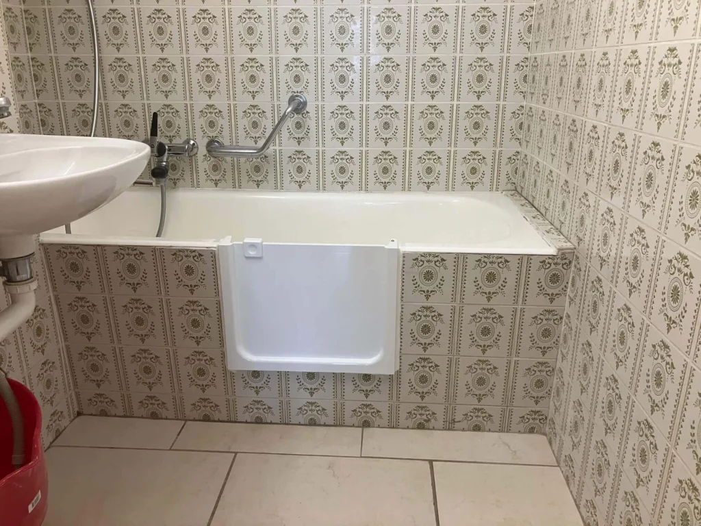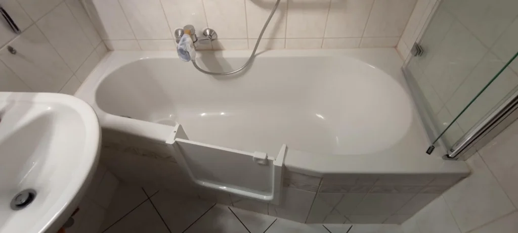Wir bauen eine wasserdichte Tür in Ihre vorhandene Badewanne, um ihr Betreten und Verlassen zu erleichtern.