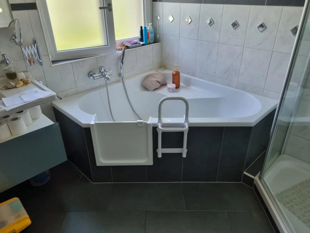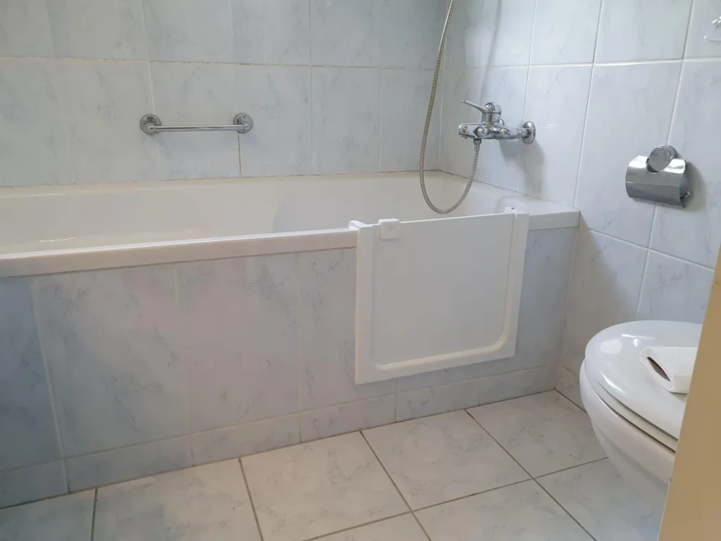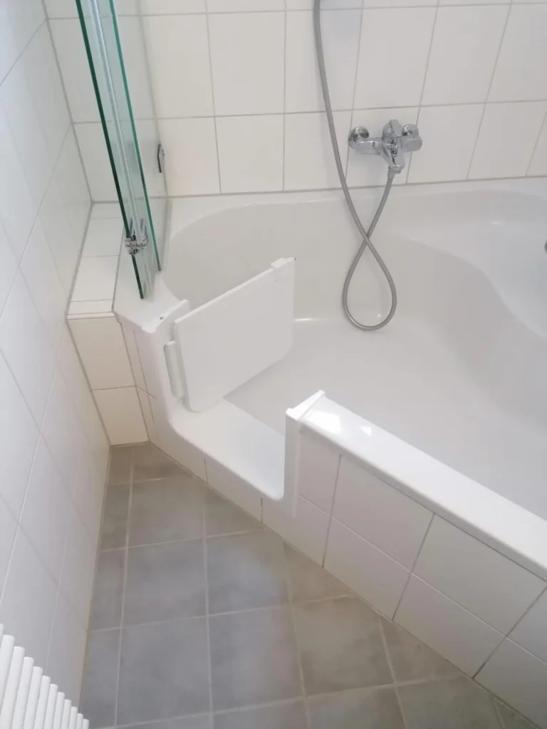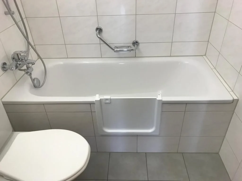 Wir bauen die Tür ohne Plättlischaden in jede Wannenform und jedes Wannenmaterial ein